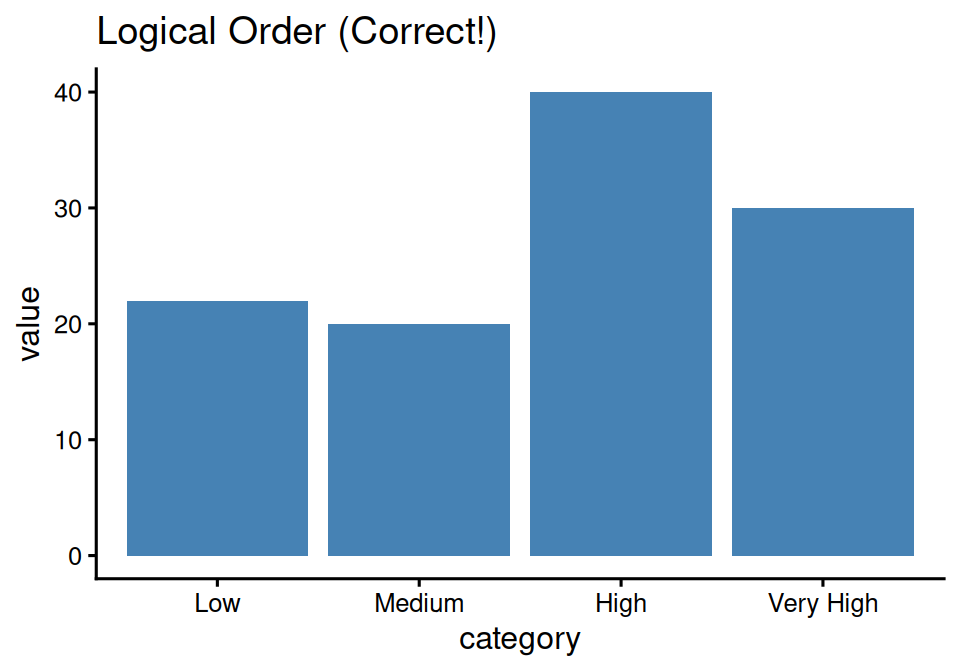 readr::read_csv() instead of read.csv() - better type detection and no implicit conversion to factors.as.numeric(as.character(factor)) not as.numeric(factor)str() before analysis to verify data typesBad: Numeric categories
