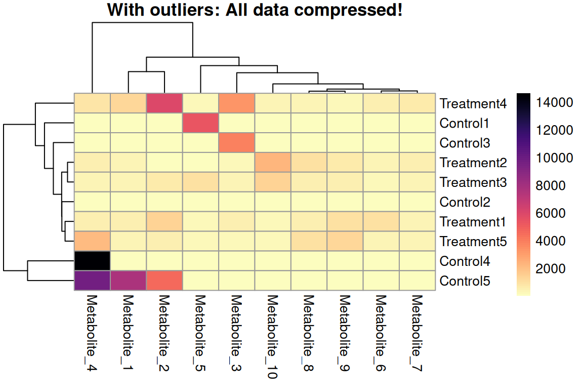 The extreme outlier compresses the color scale for all other values!