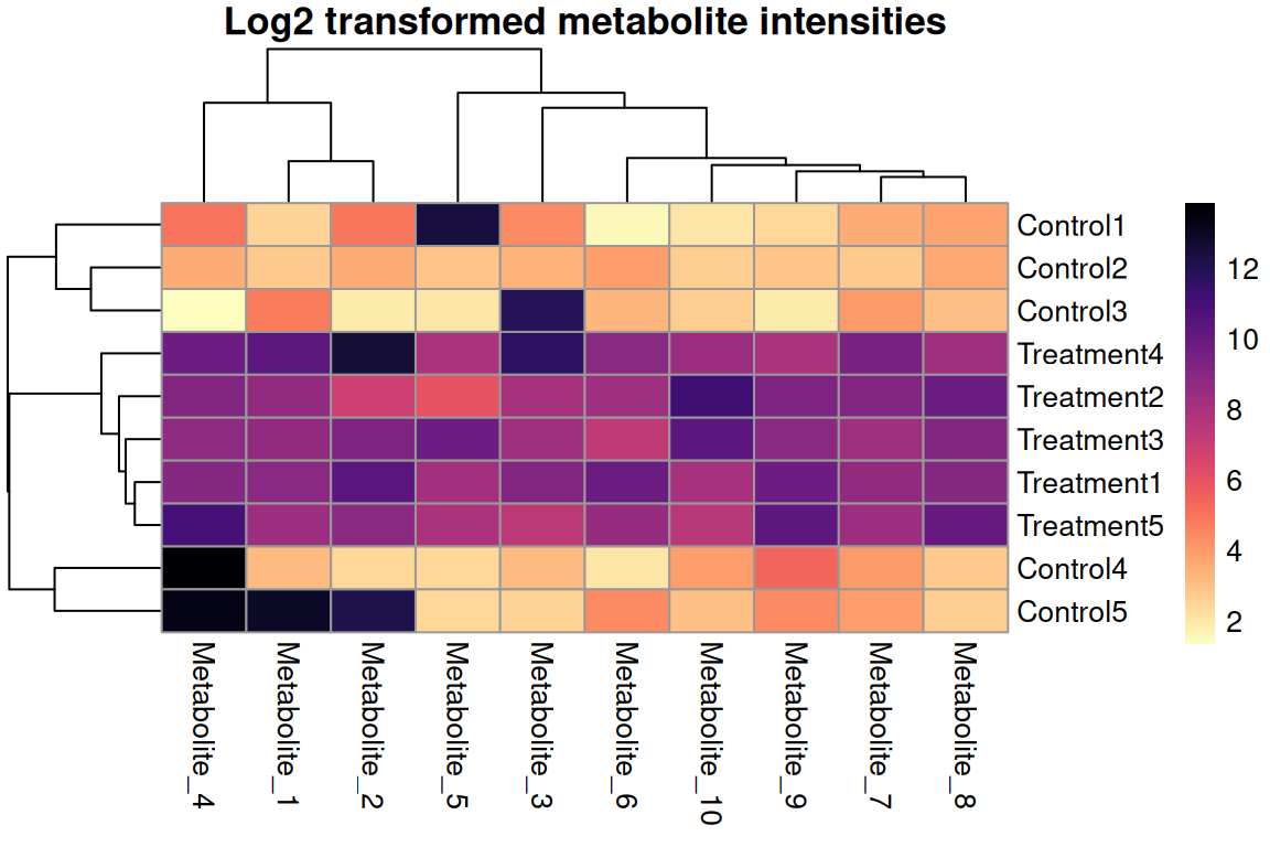 scale_color_brewer(palette = "Set2") # or "Dark2", "Paired", etc.Scenario: Metabolomics data (log2-transformed)