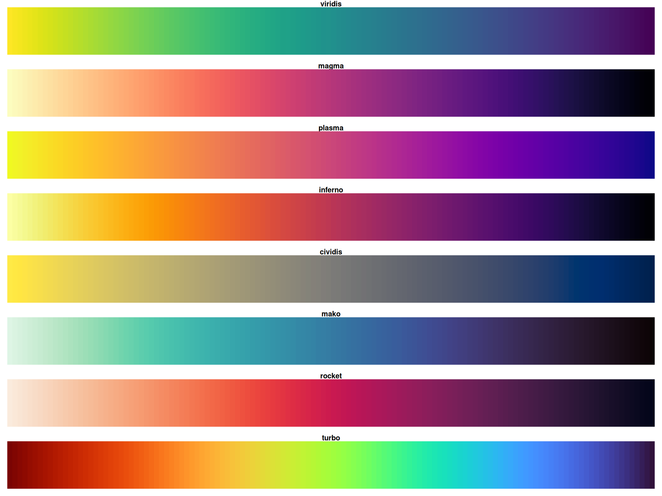 All are perceptually uniform and colorblind-friendly!