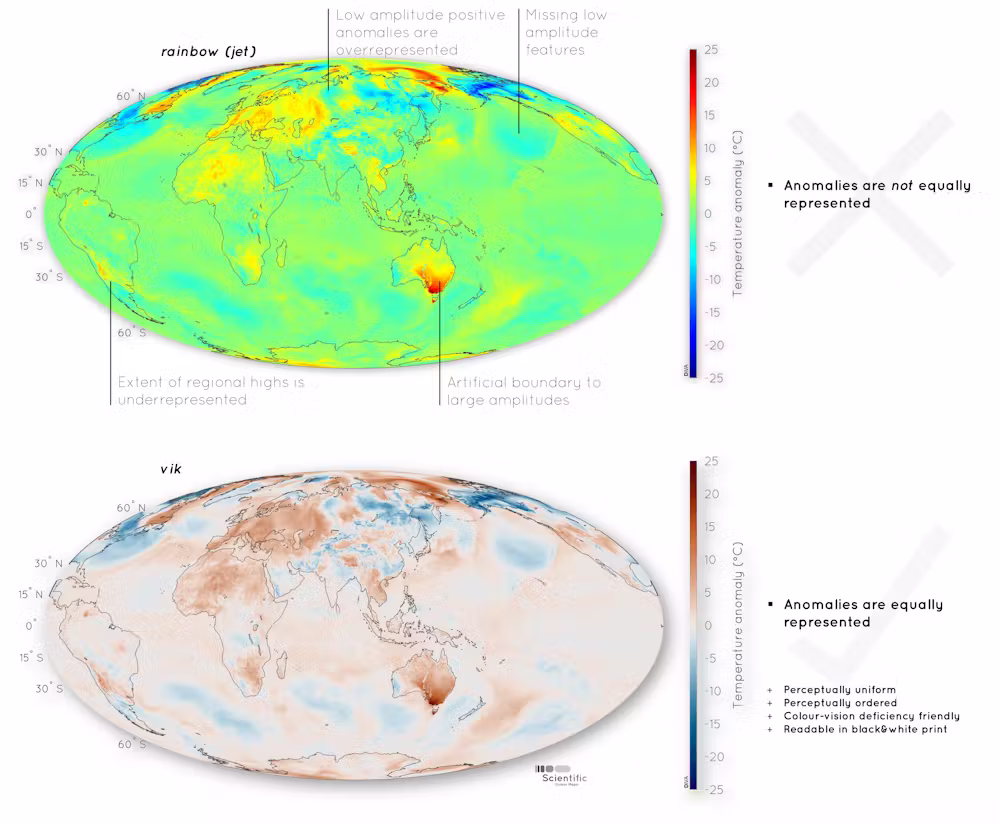 - ❌ Rainbow/jet colormaps
