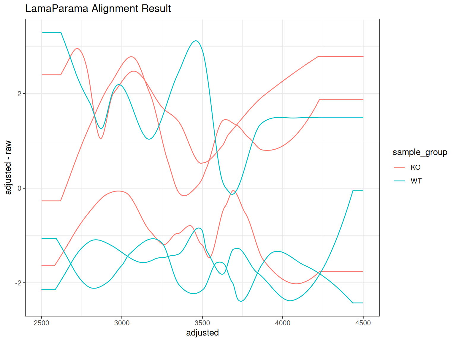 p_lama <- gplotAdjustedRtime(xdata_lama, color_by = sample_group) +