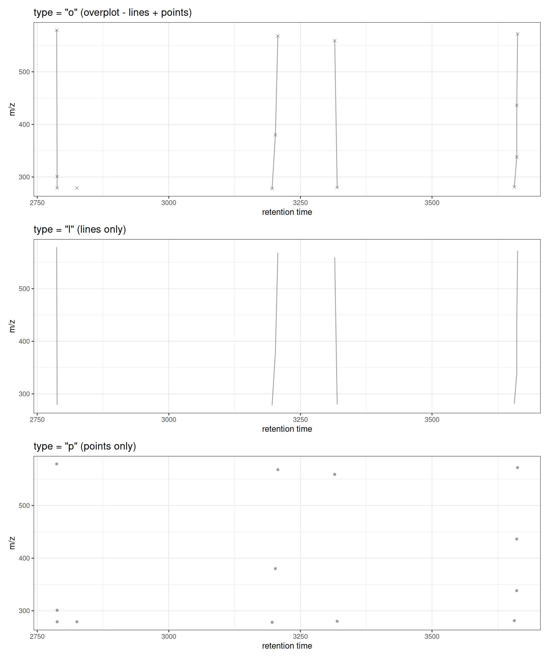ggtitle('type = "o" (overplot - lines + points)')